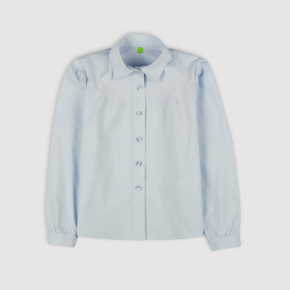 Блузка с фигурными кокетками, цвет голубой