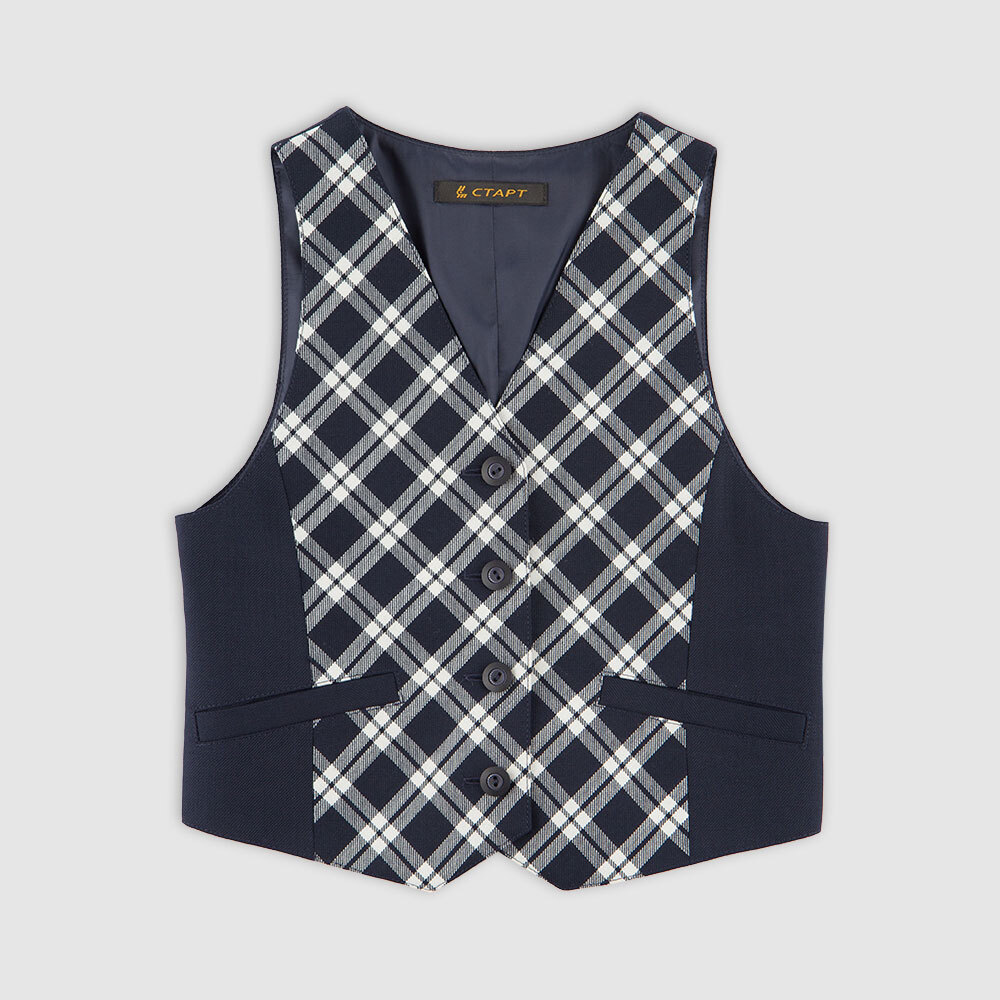 Жилет со вставками из ткани в клетку, на подкладке, цвет темно-синий