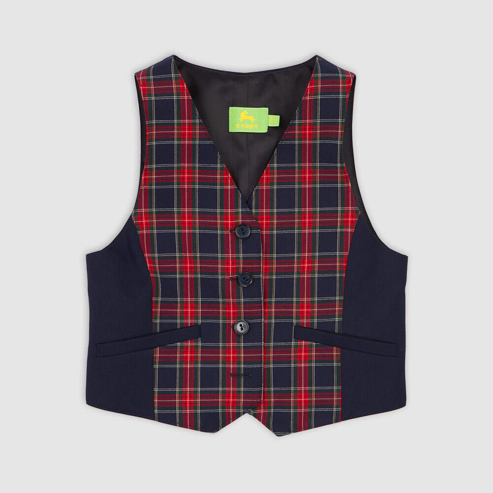Жилет со вставками из ткани в клетку, на подкладке, цвет синий