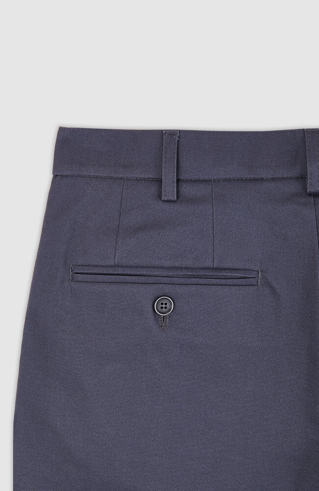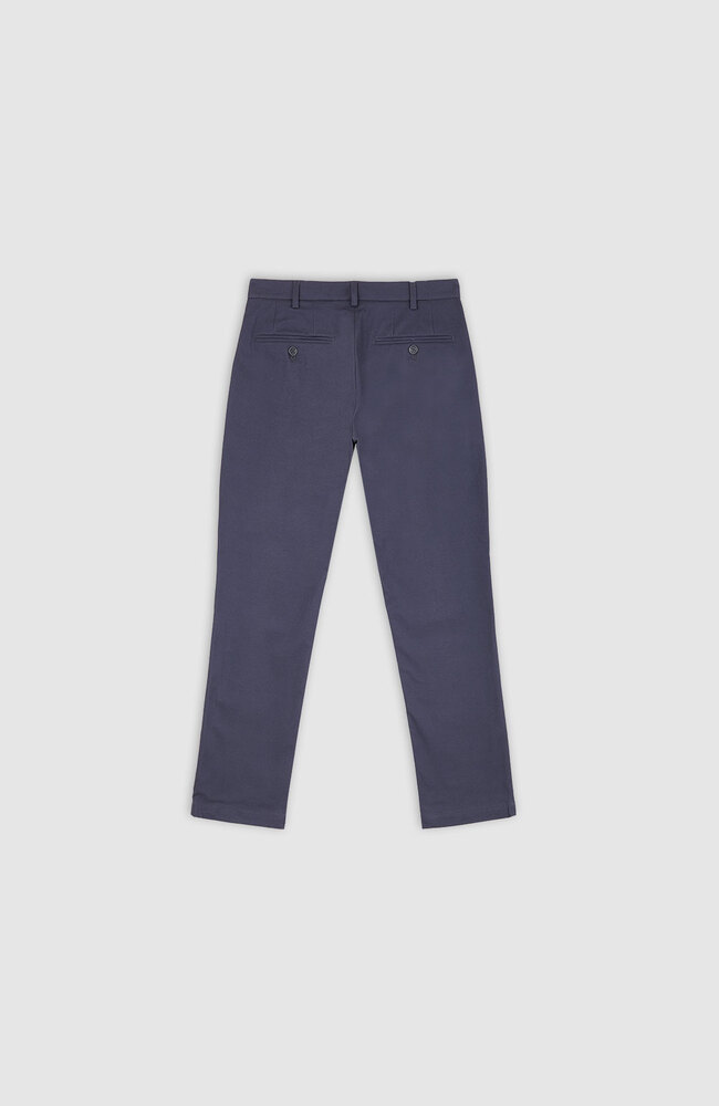 Зауженные брюки из хлопка. Застегиваются на тесьму «молния», петлю и пуговицу. Два боковых кармана и два задних прорезных кармана "в рамку". Задние карманы застегиваются на петлю и пуговицу. Без подкладки.